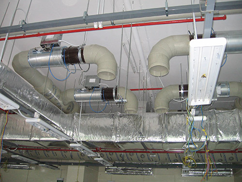 4) 主(zhu)風管(guan)設(she)計風速小(xiao)于9-12m/s,支風管(guan)設(she)計風速小(xiao)于5-7m/s
